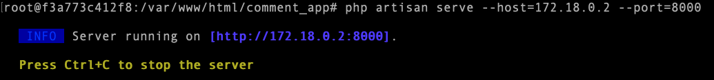php artisan serve --host=172.18.0.2 --port=8000