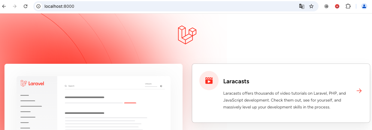 浏览器访问:http://localhost:8000/ (docker laravel容器拉起时,容器里的8000端口映射到本地的0.0.0:8000端口)