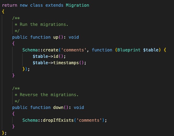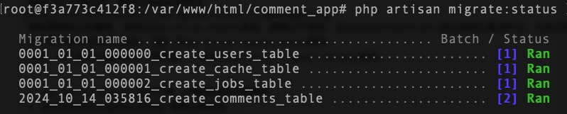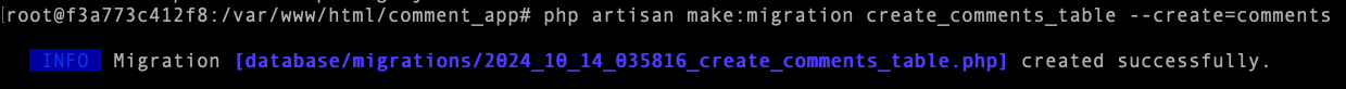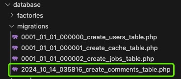 对应/database/migrations/目录下生成table迁移文件2024_10_14_035816_create_comments_table.php.