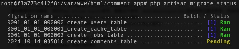 2、php artisan migrate:status 查看迁移状态
