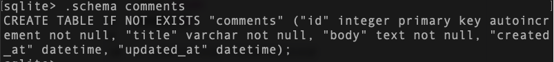 执行迁移后,数据库里已生成了对应的comments表