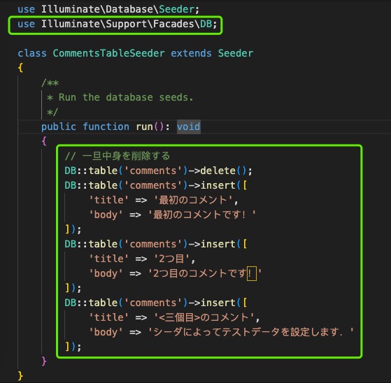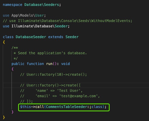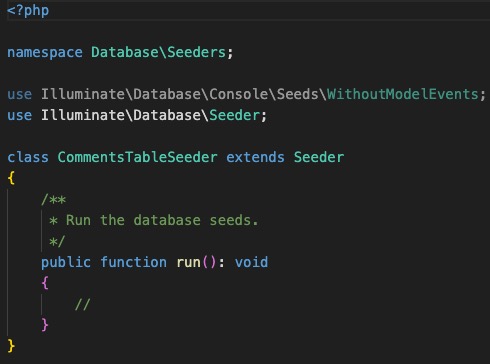 执行php artisan make:seeder CommentsTableSeeder,生成seeder文件
