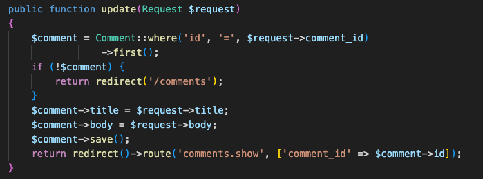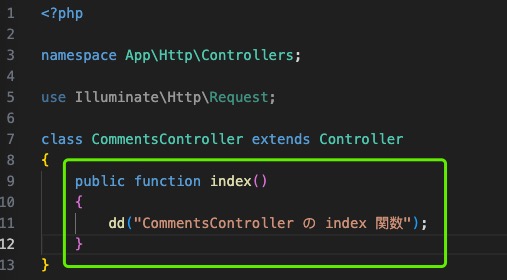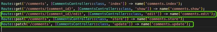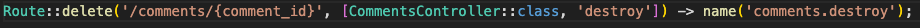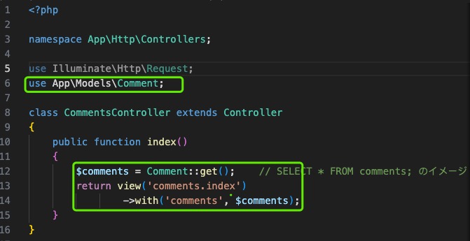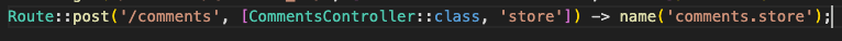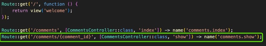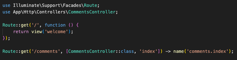 在这个routes/web.php中指定/comments的URI时,试着设定调用CommentsController的index函数。