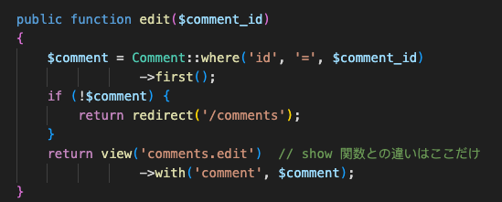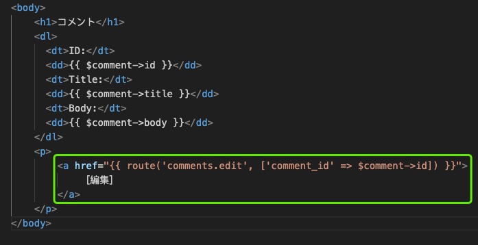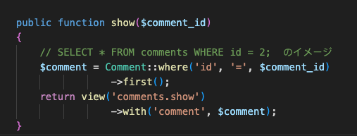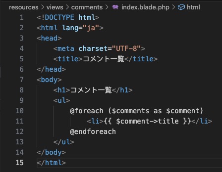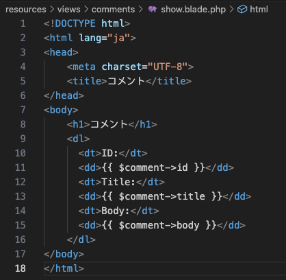 在视图resources/views目录中制作comments子目录,创建show.blade.phpコピー文件