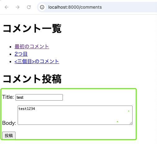 再次访问http://localhost:8000/comments,web返回如下