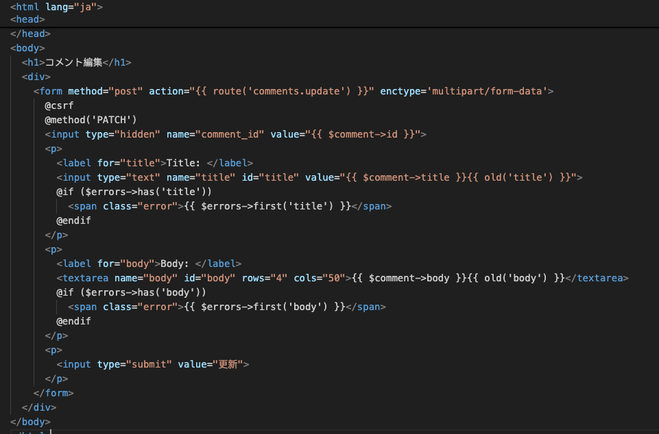 新加视图文件 resources/views/comments/edit.blade.php