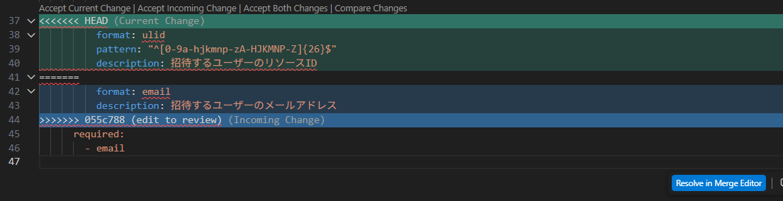 コンフリクトが出たら解消して git add ... → git commit